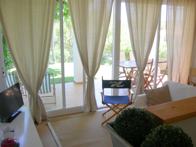 Bonito y acogedor apartamento en planta baja con porche y jardín de uso privado, con vistas al mar. Dispone de tres habitaciones: habitación principal con cama de matrimonio, habitación doble con 2 camas, y habitación con una cama nido. Cuarto de baño completo, recientemente reformado. Cocina abierta hacia el salón, recién reformada y totalmente equipada, con lavavajillas. Salón comedor muy coqueto, con amplios ventanales que dan acceso al porche, el cual está muy bien amueblado para disfrutar de comidas al aire libre y del descanso. Los ocupantes del apartamento tiene derecho al uso y disfrute de las instalaciones del Club de Tenis (piscina comunitaria, pistas multideportivas...)
